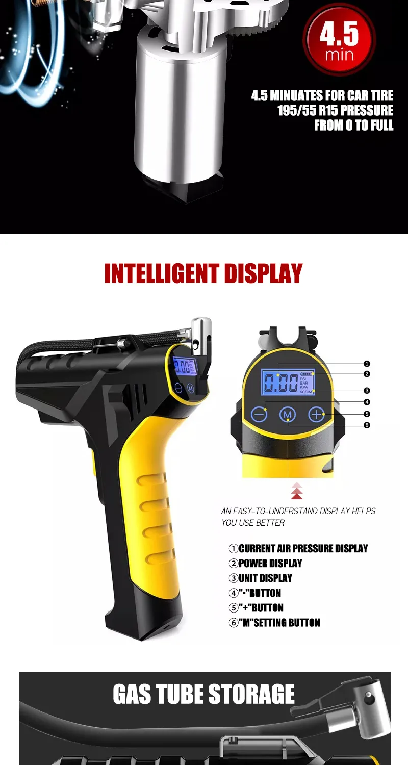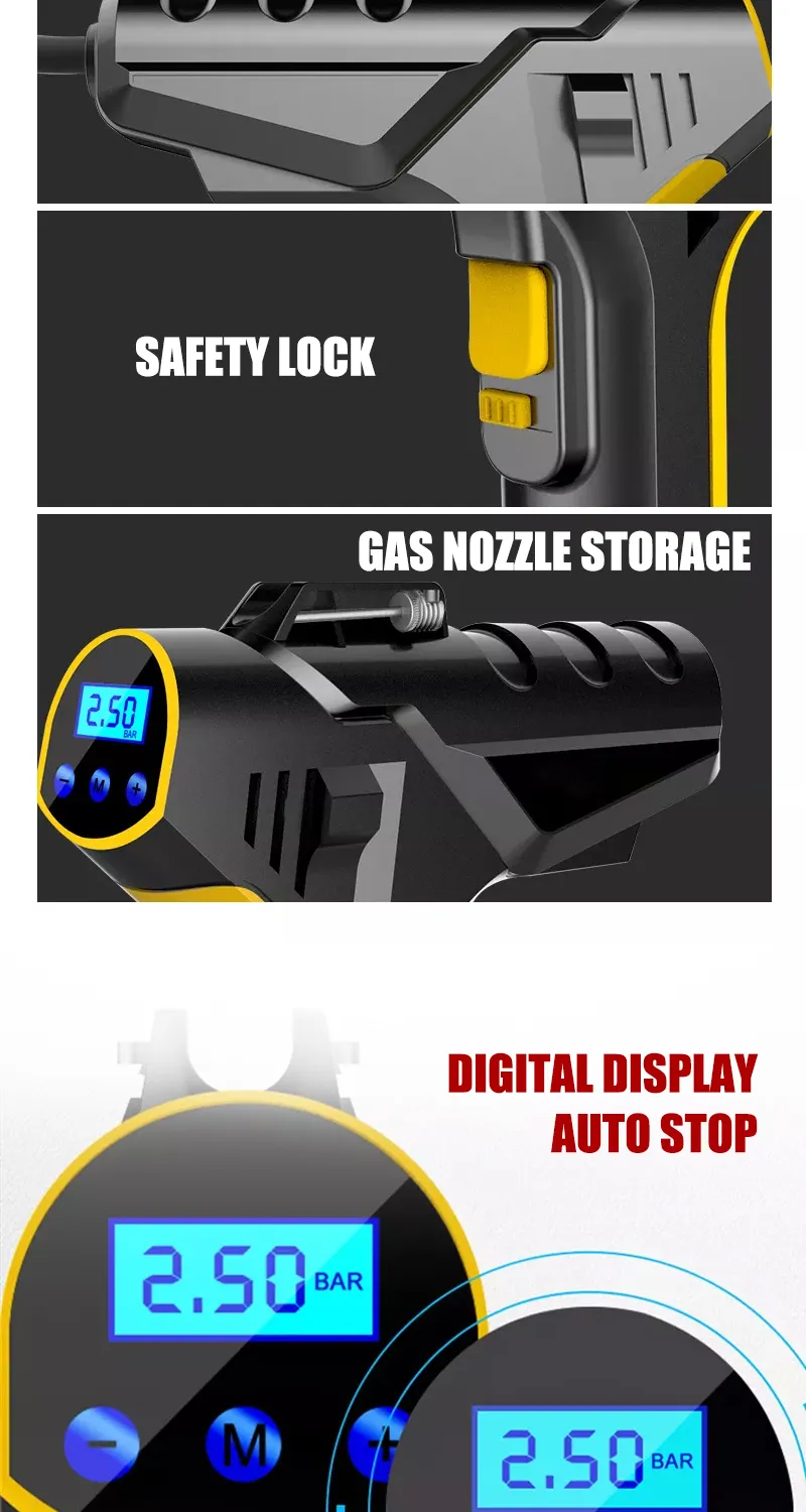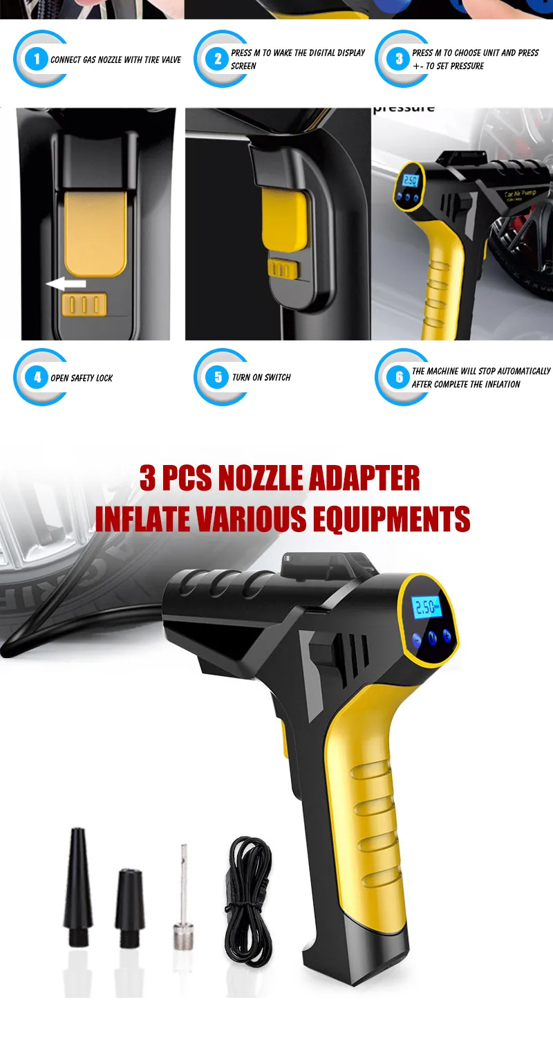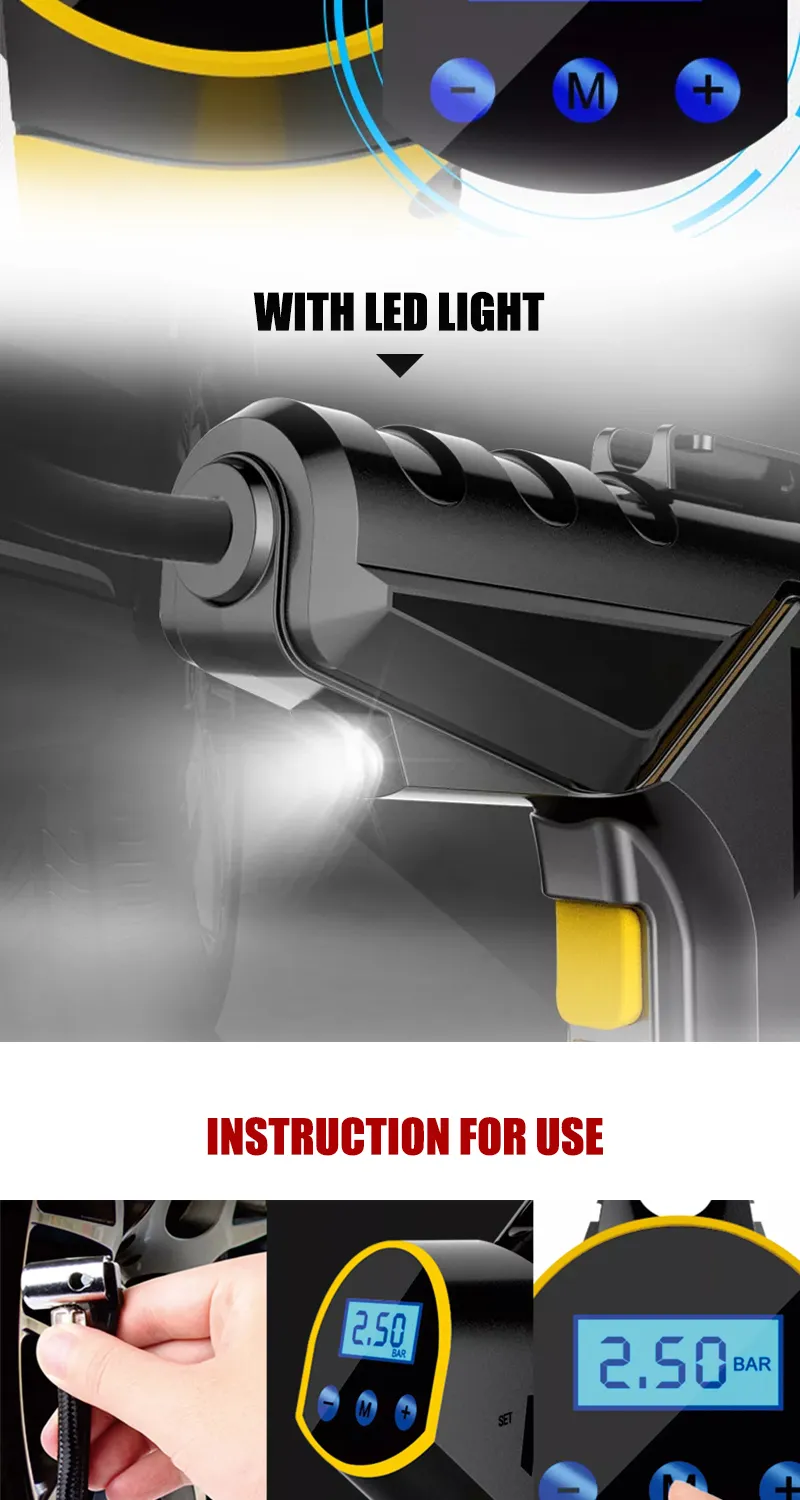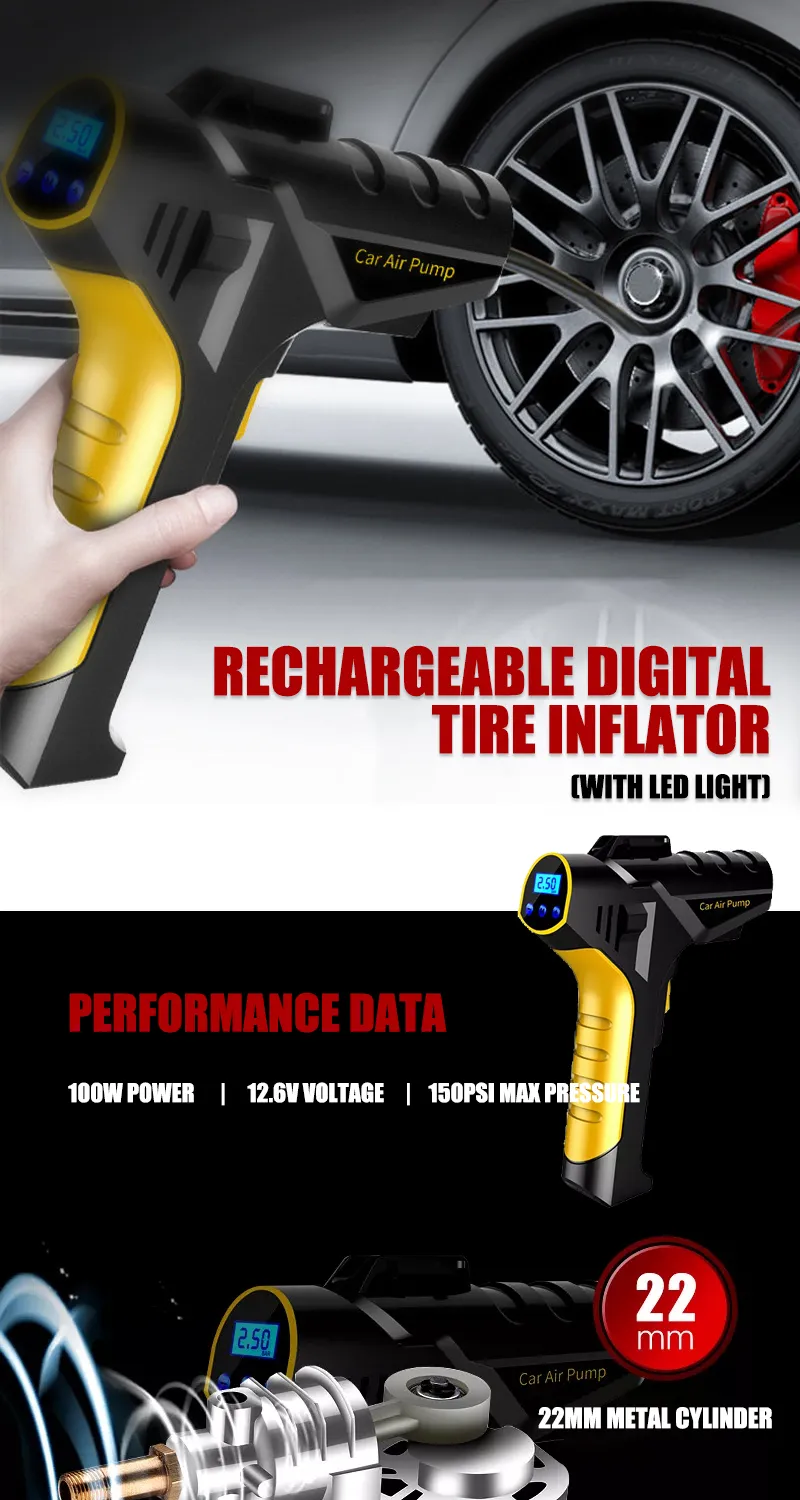Rechargeable Digital Tire Inflator With LED light Wireless Car Tyre Compressor
