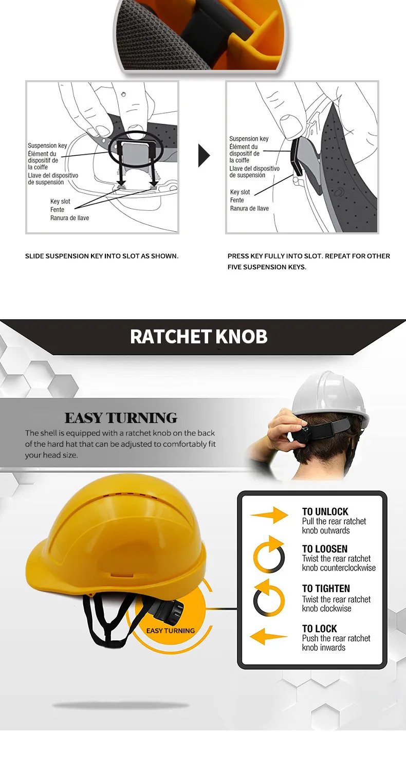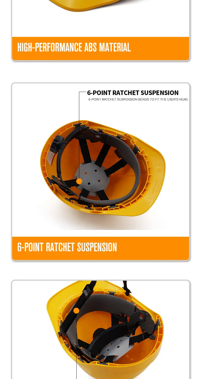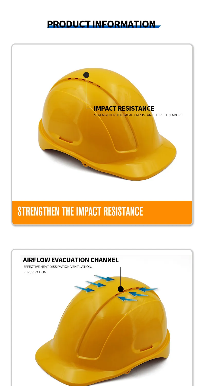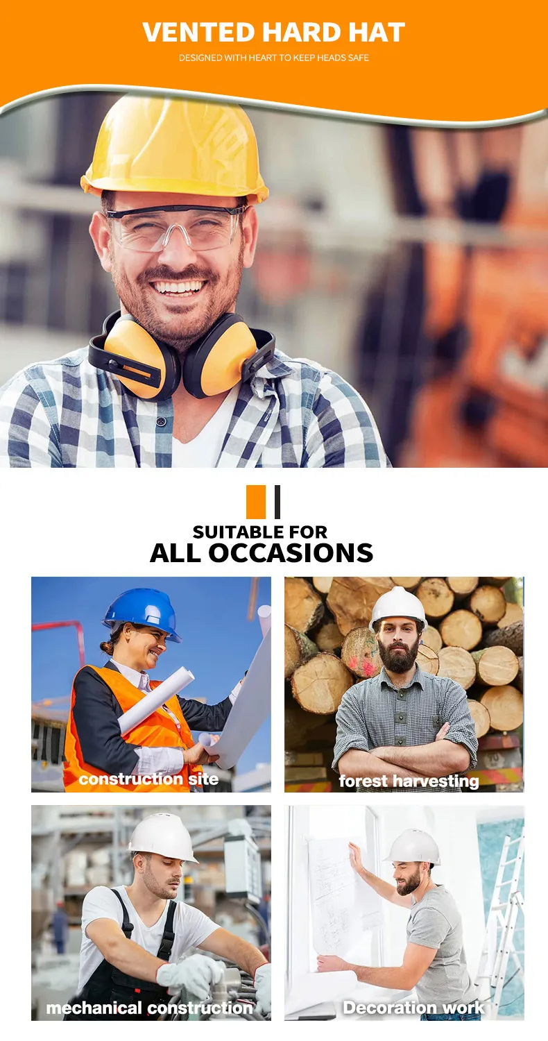 Security Personal Protective Vented Work Safety Helmet Hard Hat with 6-point Adjustable Ratchet Suspension