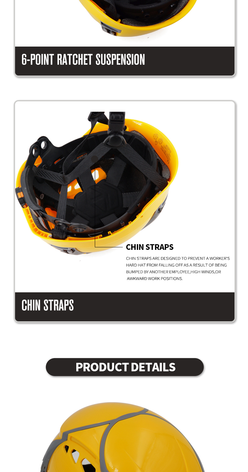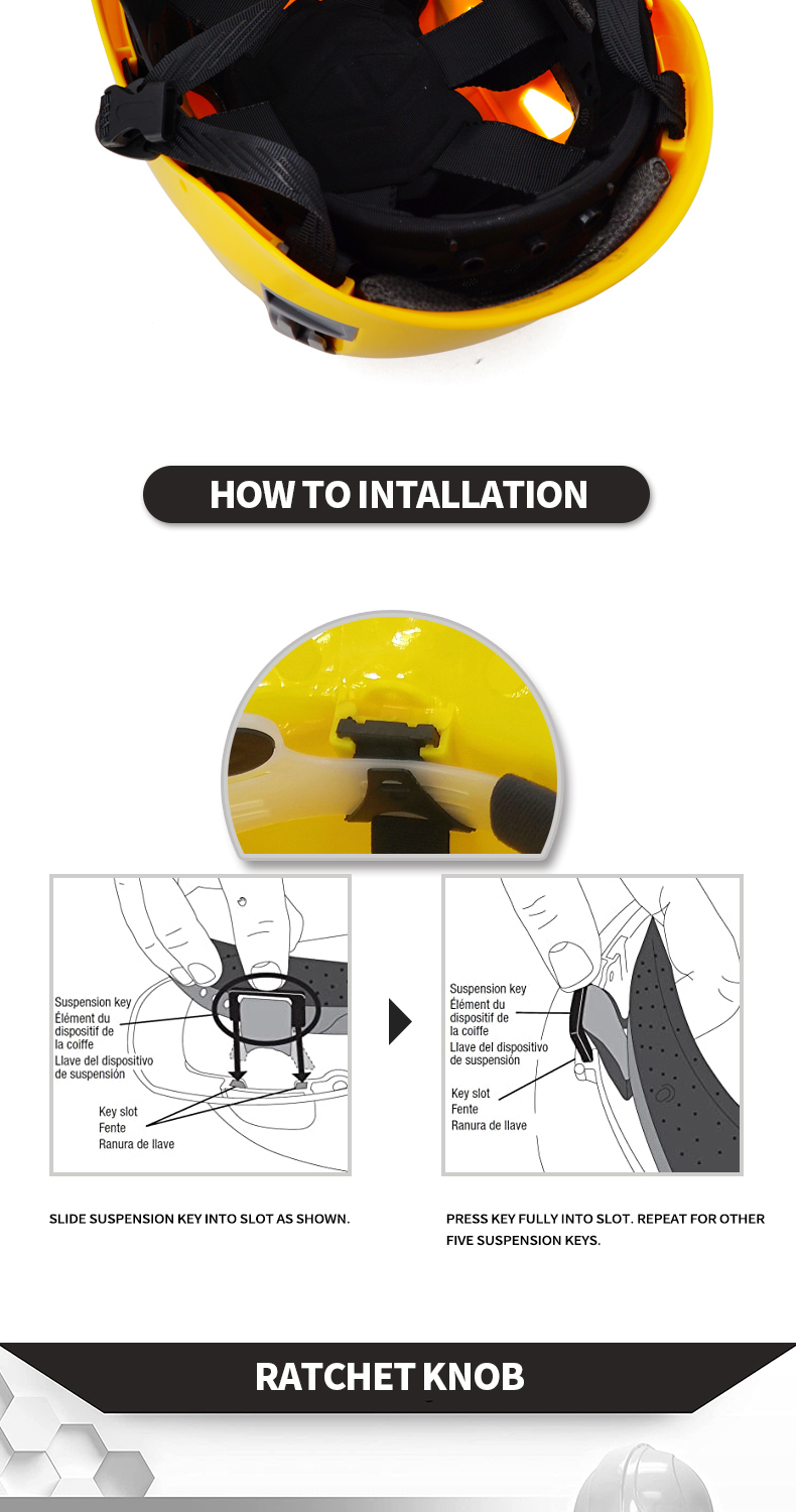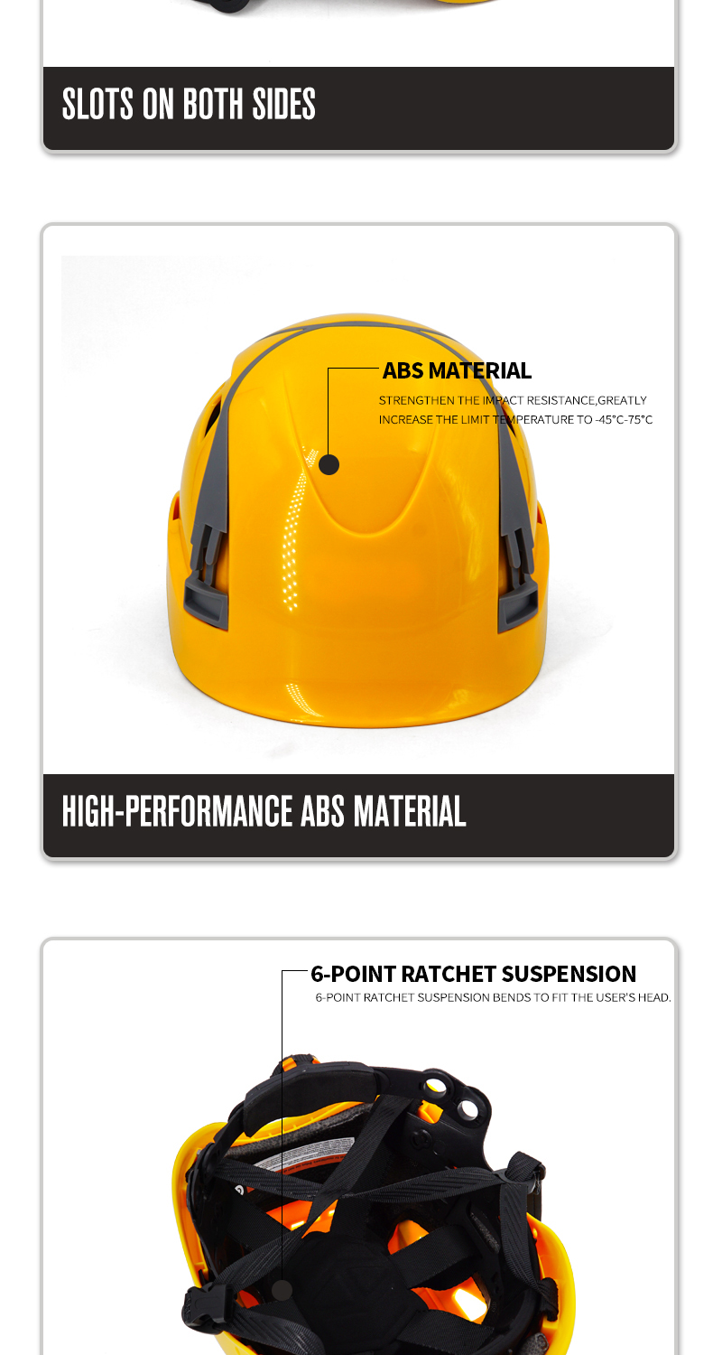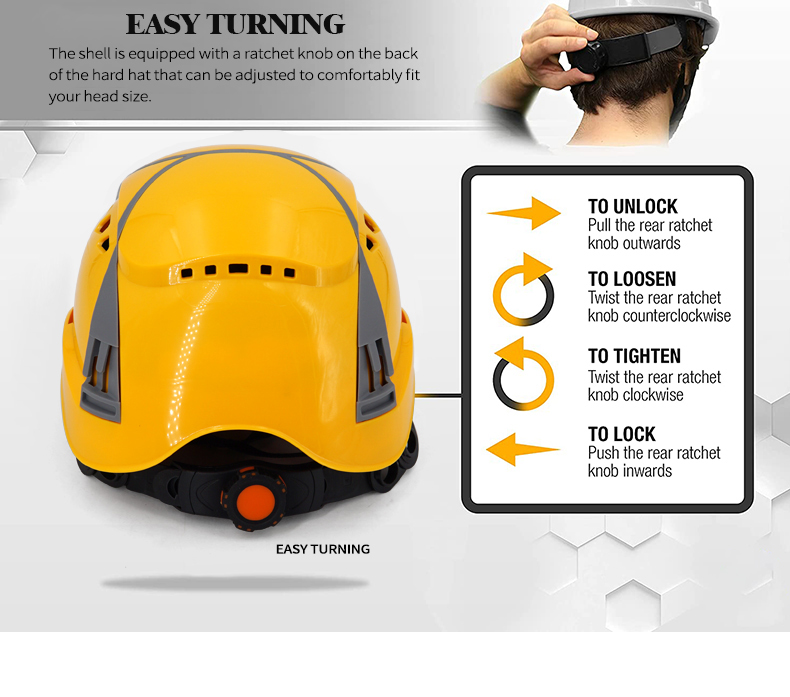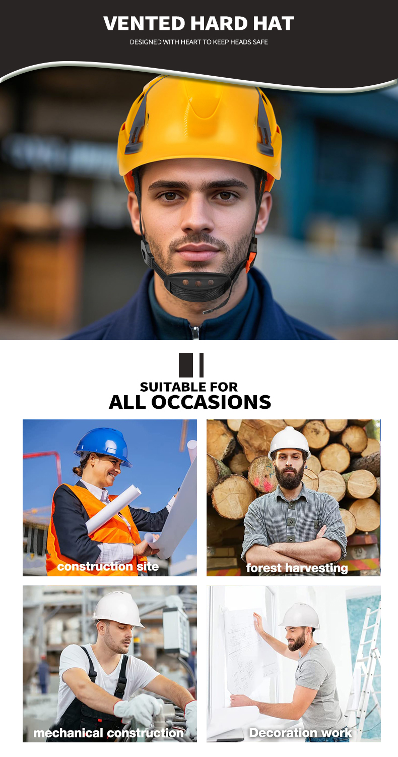 Security Personal Protective Vented Work Safety Helmet Hard Hat with 6-point Adjustable Ratchet Suspension