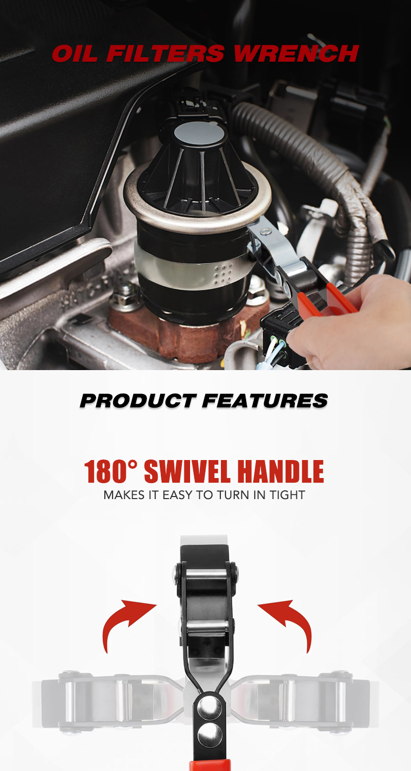 Swivel Oil Filter Wrench Oil Filter Removal Tool Fits Filters 3-3/4" to 4-3/8"