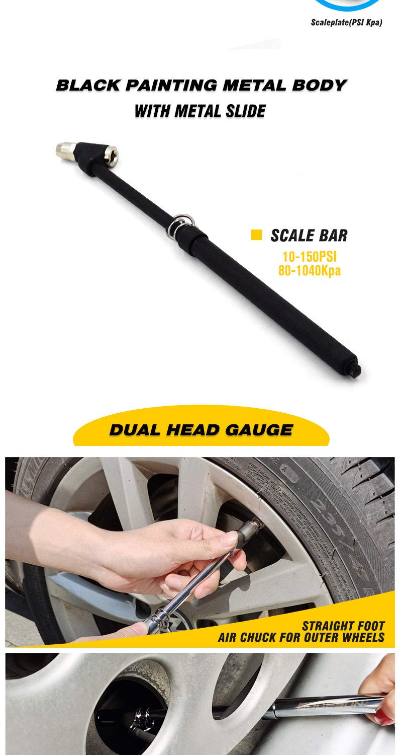 Tire Pressure Gauge Black Painting Dual Head Truck Tire Pressure Gauge 10-150PSI