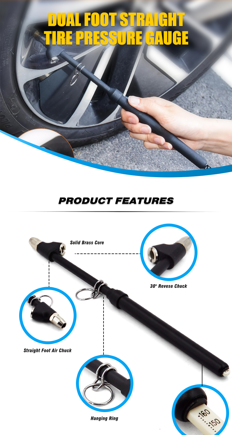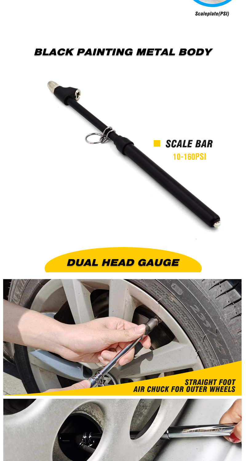 Tire Pressure Gauge Black Painting Dual Head Truck Tire Pressure Gauge 10-160PSI