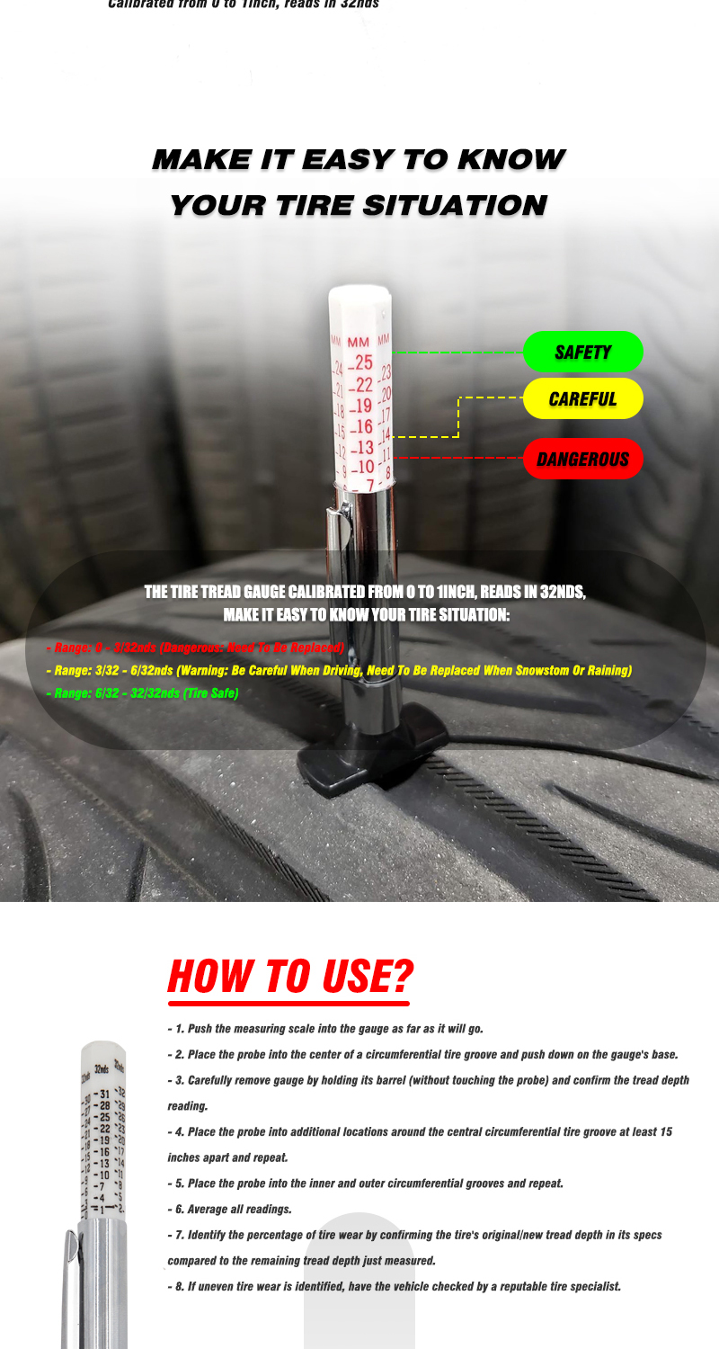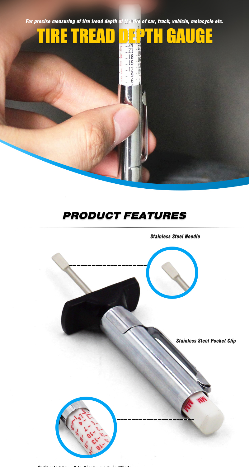 Tire Tread Depth Gauge Accurate Measurement Tools Color Coded Tire Depth Gauge