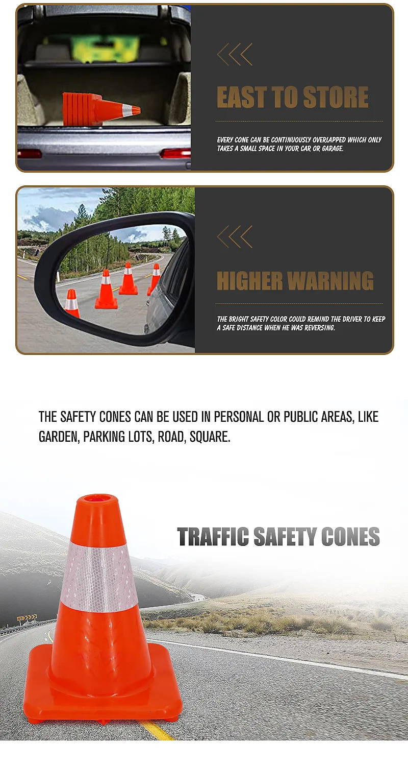 Traffic Safety Cones with Reflective Collars PVC Orange Construction Cone for Home Road Driveway Parking