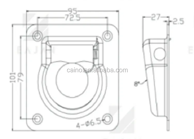 Trailer Recessed pan tie down anchor point fitting breaking force 4400 lbs
